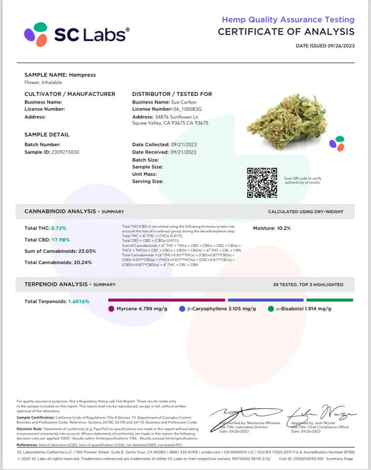 Hempress CBD Flower 17.98% CBD